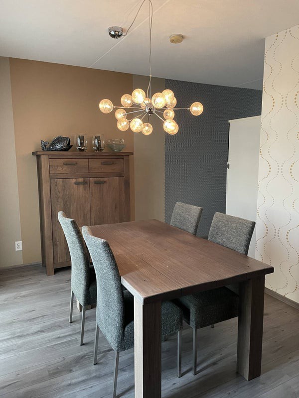 Het appartement heeft een lichte, ruime woonkamer. De open keuken is voorzien van een gaskookplaat, afzuigkap, vaatwasser, oven en magnetron.