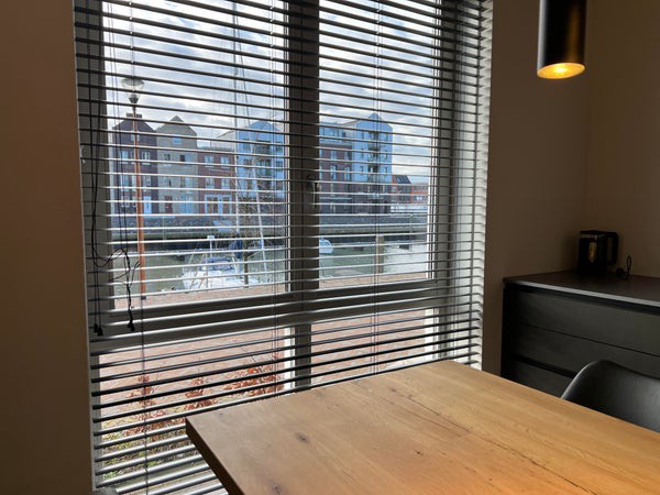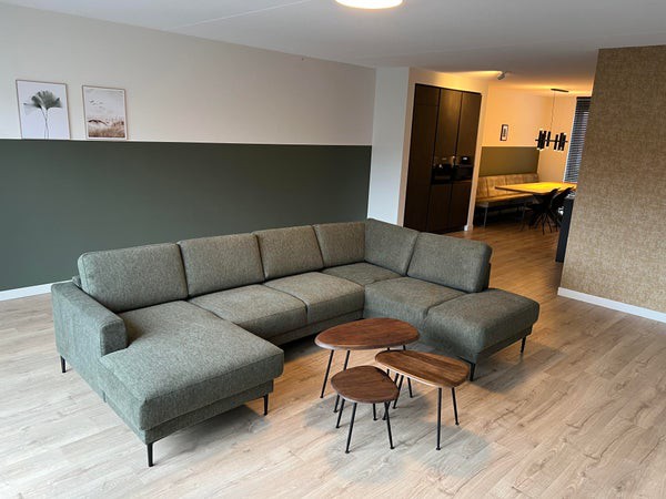 De moderne industriële leefkeuken beschikt over diverse (inbouw)apparatuur zoals koelkast, vriezer, inductie kookplaat met geïntegreerde afzuigkap, combi-magnetron, koffiezetapparaat en een vaatwasser allen van het merk AEG mat staal variant. De indeling zorgt voor voldoende werk- en opbergruimte.