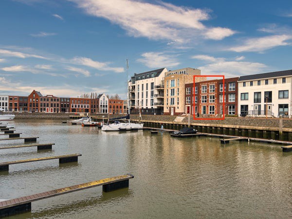 De achtertuin is gelegen op het noordoosten en aan de achterzijde is een vrijstaande berging gesitueerd. Via de achterzijde komt u op het gemeenschappelijke terrein waar de twee eigen parkeerplaatsen zijn gelegen. Naast de achtertuin beschikt de woning ook over een voortuin, deze grenst aan de kade en heeft uitzicht over het water.