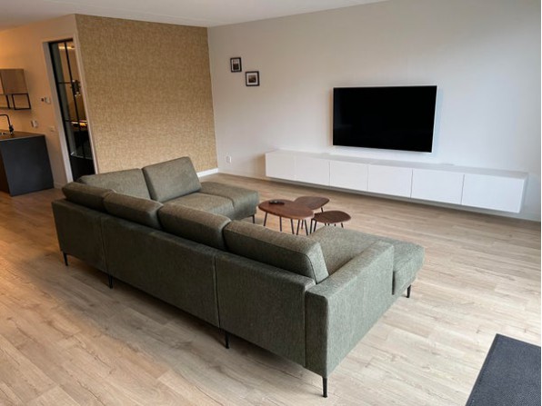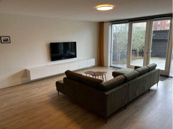Entree, toilet met hangend closet, meterkast en toegang tot de woonkamer. Op de begane grond is een mooie lichte laminaatvloer met vloerverwarming gesitueerd. De ruim opgezette woonkamer heeft een breedte van ca. 5,70 m en een lengte van ca. 12 m inclusief keuken.