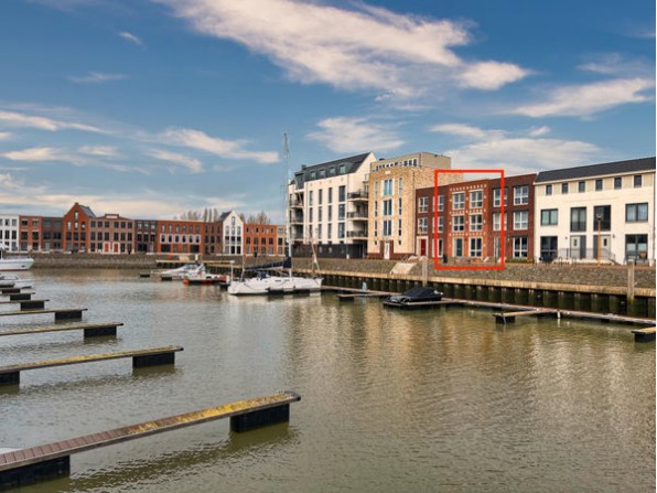 De achtertuin is gelegen op het noordoosten en aan de achterzijde is een vrijstaande berging gesitueerd. Via de achterzijde komt u op het gemeenschappelijke terrein waar de twee eigen parkeerplaatsen zijn gelegen. Naast de achtertuin beschikt de woning ook over een voortuin, deze grenst aan de kade en heeft uitzicht over het water.