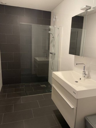 De slaapkamer beschikt over een tweepersoons boxspring en een royale kledingkast. De badkamer is voorzien van een inloop douche, wastafelmeubel en radiator. Het toilet is apart in de hal.