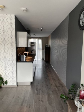 Het appartement heeft een lichte, ruime woonkamer. De open keuken is voorzien van een gaskookplaat, afzuigkap, vaatwasser, oven en magnetron.