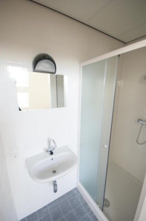 Doucheruimte voorzien van wastafel, douche en aansluiting wasmachine.