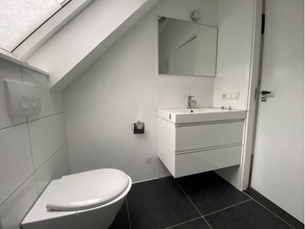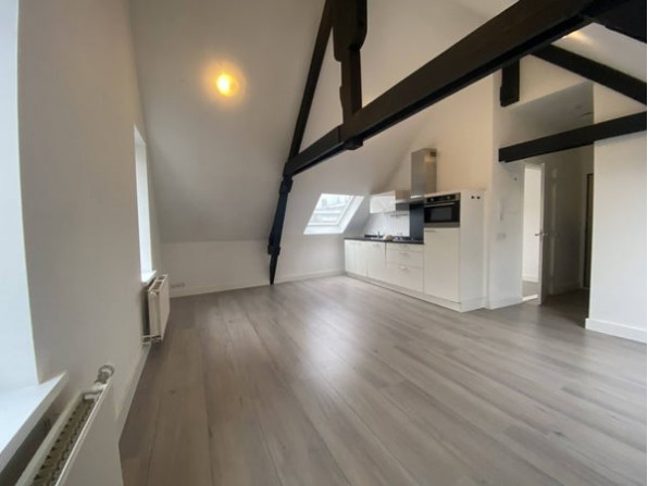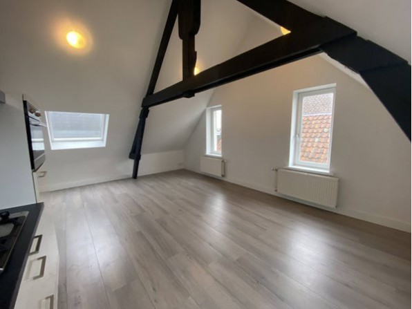 Via de trapopgang komt u op de 2e etage. Via de hal (1.00 x 2.80 m) komt u in de woonkamer met keuken (6.20 x 4.50 m). De slaapkamer is 3.65 x 260 m groot en de moderne badkamer met toilet en ruimte voor de wasmachine is 2.50 x 175 m.